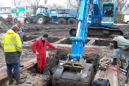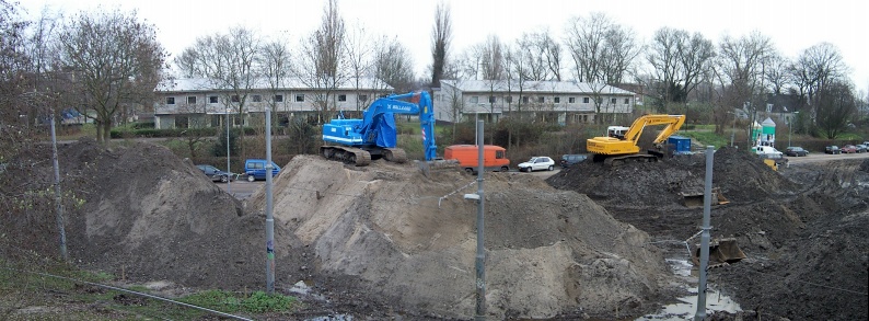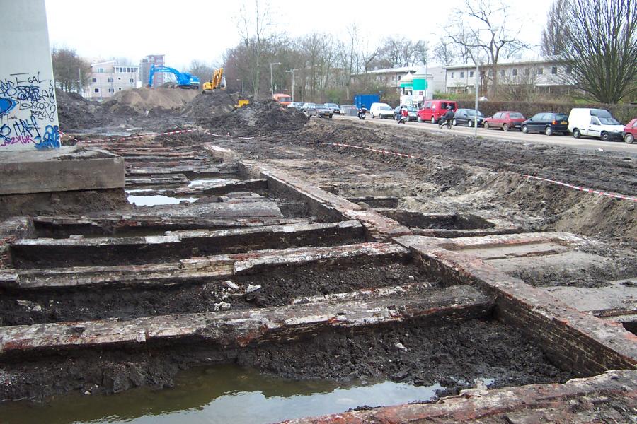 | Dinsdag 3 december 2002: Opnieuw foto's van de opgraving bij de Amsterdamse Brug, gebied Zeeburgerdijk-Oost. Ik sprak daar tevens met de mensen van Bureau Monumenten en Archelogie. Ik begreep dat n.a.v. de gevonden potscherven men nu denkt dat de oudste delen wellicht uit de 17e of 18e eeuw zijn. Dus toch heel wat ouder dan ik eerst dacht. De eerste week van december 2002 wordt alles verder onderzocht. Bekeken wordt of dit voor Zeeburg unieke bodemarchief voor het nageslacht behouden kan blijven! |